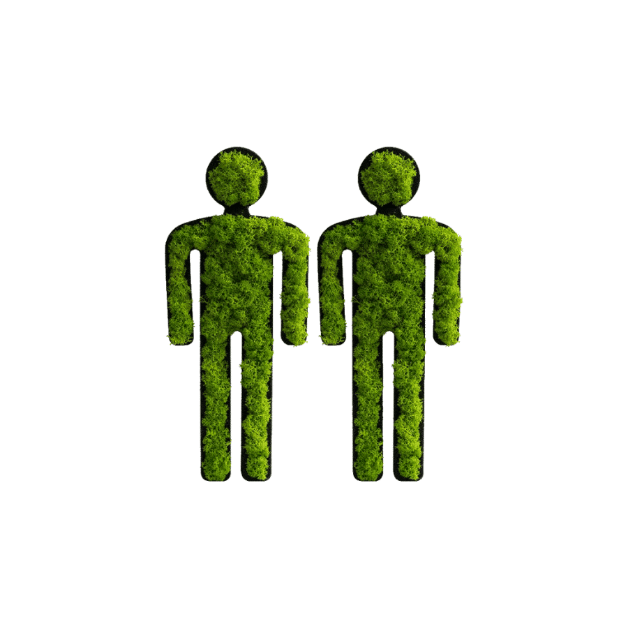 Das Toilettenschilder-Set „Mann“ und „Mann“ aus einem schwarzen Korkrahmen und echtem, konservierten Islandmoos ist ein absoluter Hingucker – und zeigt zweifelsohne für wen die Toiletten oder Umkleideräume vorgesehen sind. Mit 25 cm hat es die optimale Größe für Türen oder als Wegweiser an Wänden.